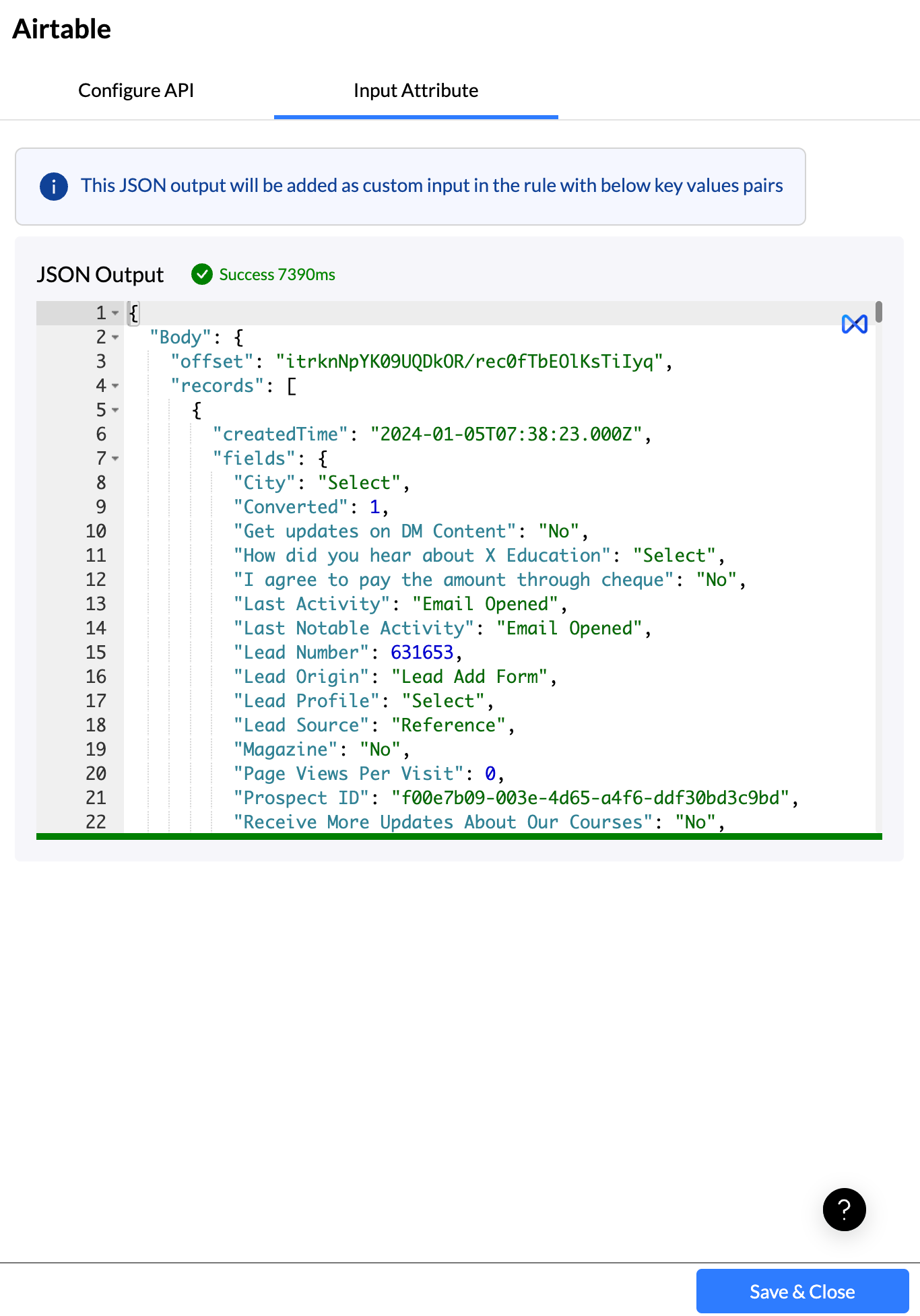 6. After that, finally, click on `Save & Close`.  And then again click on `Save and Close` to save the input attribute. And now, it's ready to be used in the Rule logic.
