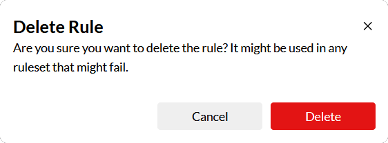 4. You must update the rulesets after you delete a rule. Otherwise, the ruleset will fail. If the rule you are deleting is part of a ruleset, then you must first remove the rule from the ruleset configuration and then delete the rule.