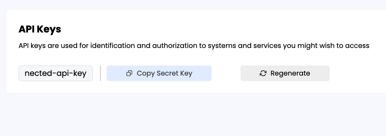 ### Copy the Nected API key